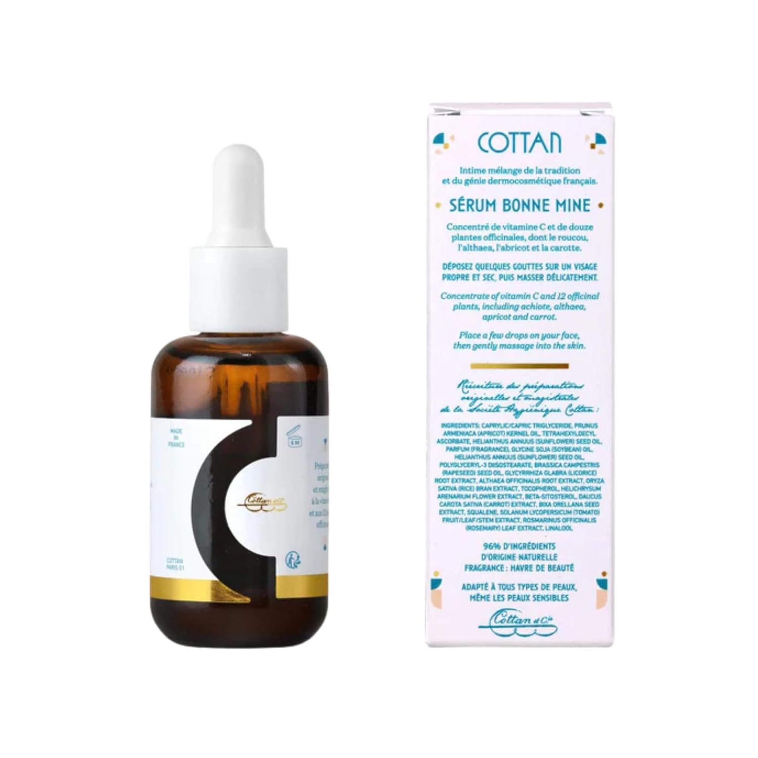 • LUXURIOUS REFINING FACE SERUM – Cottan Paris Serum Bonne Mine is a premium facial serum with 12 plant extracts that deeply nourish and hydrate the skin. This lightweight formula firms and smooths the skin, leaving it feeling soft and refreshed with a velvety texture.
