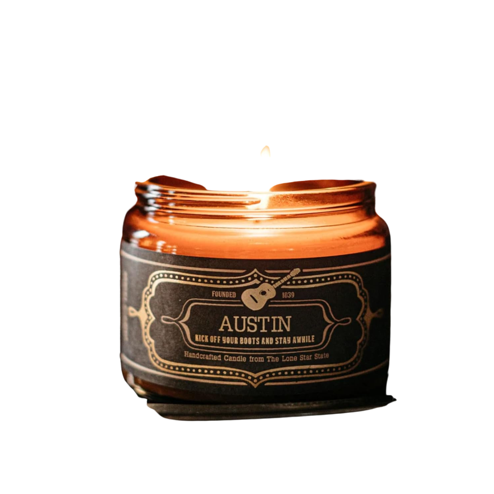 • Kick Off Your Boots and Stay Awhile! Float through the Capital City with burnt orange longhorns and rockabilly tunes. Picnics in the grassy parks and jam sessions at The Continental Club. A rustic and natural scent, with blended notes of woodsy patchouli, prairie grass, and Mexican amber. Let the natural beauty wow you and the friendly folk charm you!
