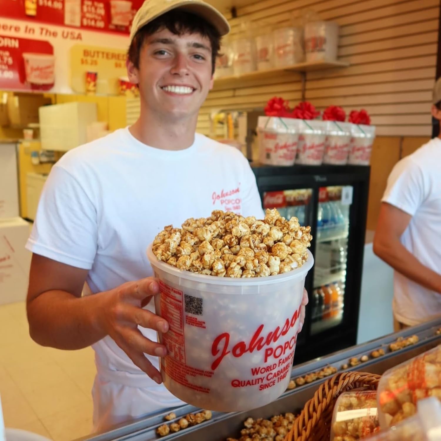 Our famous quality Caramel popcorn is made with only the finest ingredients. It is air popped and hand churned to deliver the best caramel popcorn ever made! All of our popcorn is hand made right on the boardwalk in Ocean City, New Jersey. We take pride that every batch is made to perfection so every tub you open will be exactly the same.